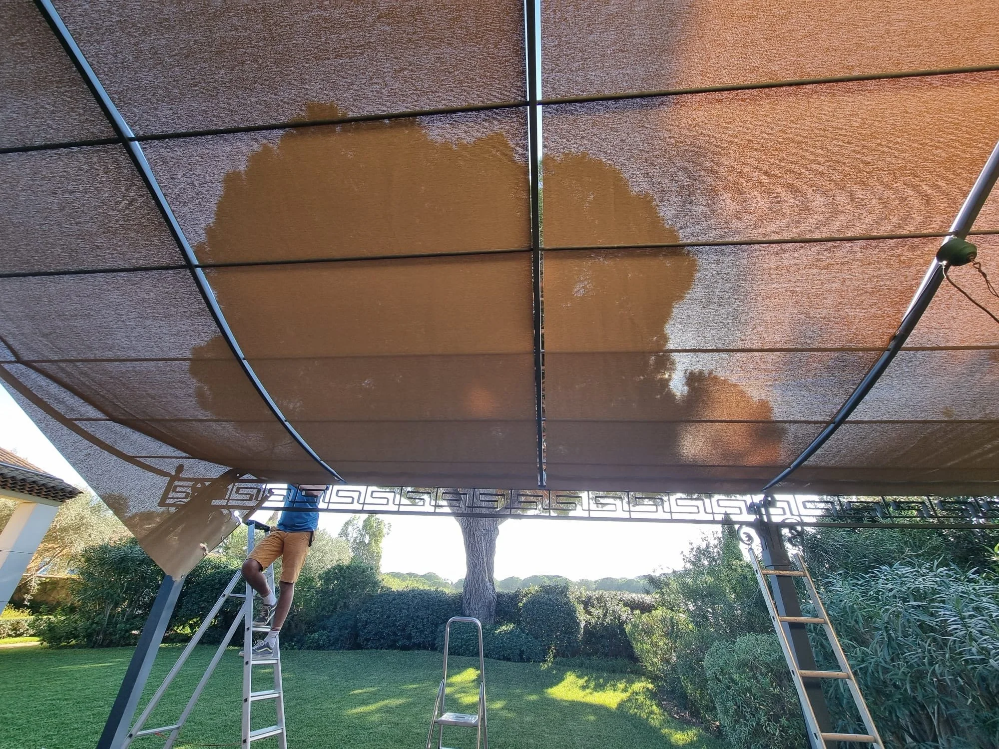 Ces toiles de pergola sont équipées d'une fermeture éclair et d'un système de tension spécialement conçu pour ce projet. Ce dispositif assure des finitions soignées et simples, alliant esthétisme et praticité. Profitez d'un espace extérieur élégant et fonctionnel, où chaque détail est pensé pour votre confort. Grâce à cette conception sur mesure, votre pergola devient un véritable atout pour votre terrasse, offrant une protection optimale contre le soleil et les intempéries.